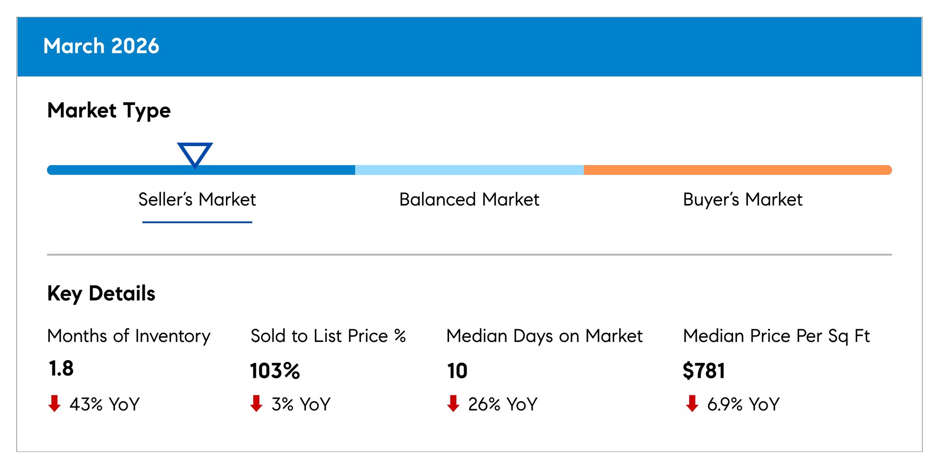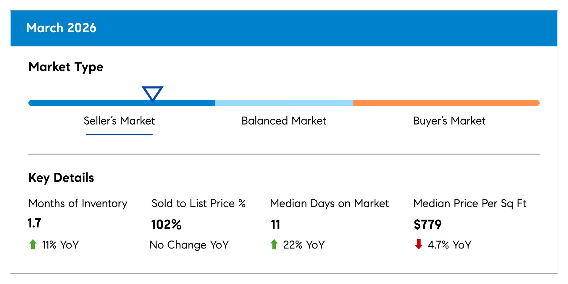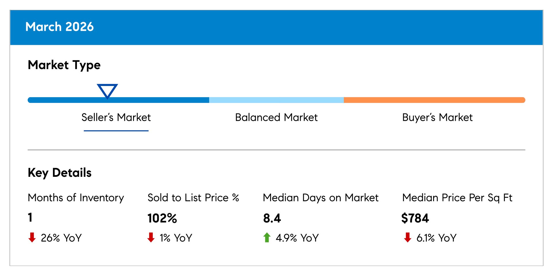 At the same time, subtle shifts are emerging beneath the surface. Homes are taking slightly longer to sell, and price per square foot is down year over year, pointing to increased buyer selectivity. In this environment, well-prepared and appropriately priced homes are still commanding strong results, while aspirational pricing is met with more resistance than in recent years.