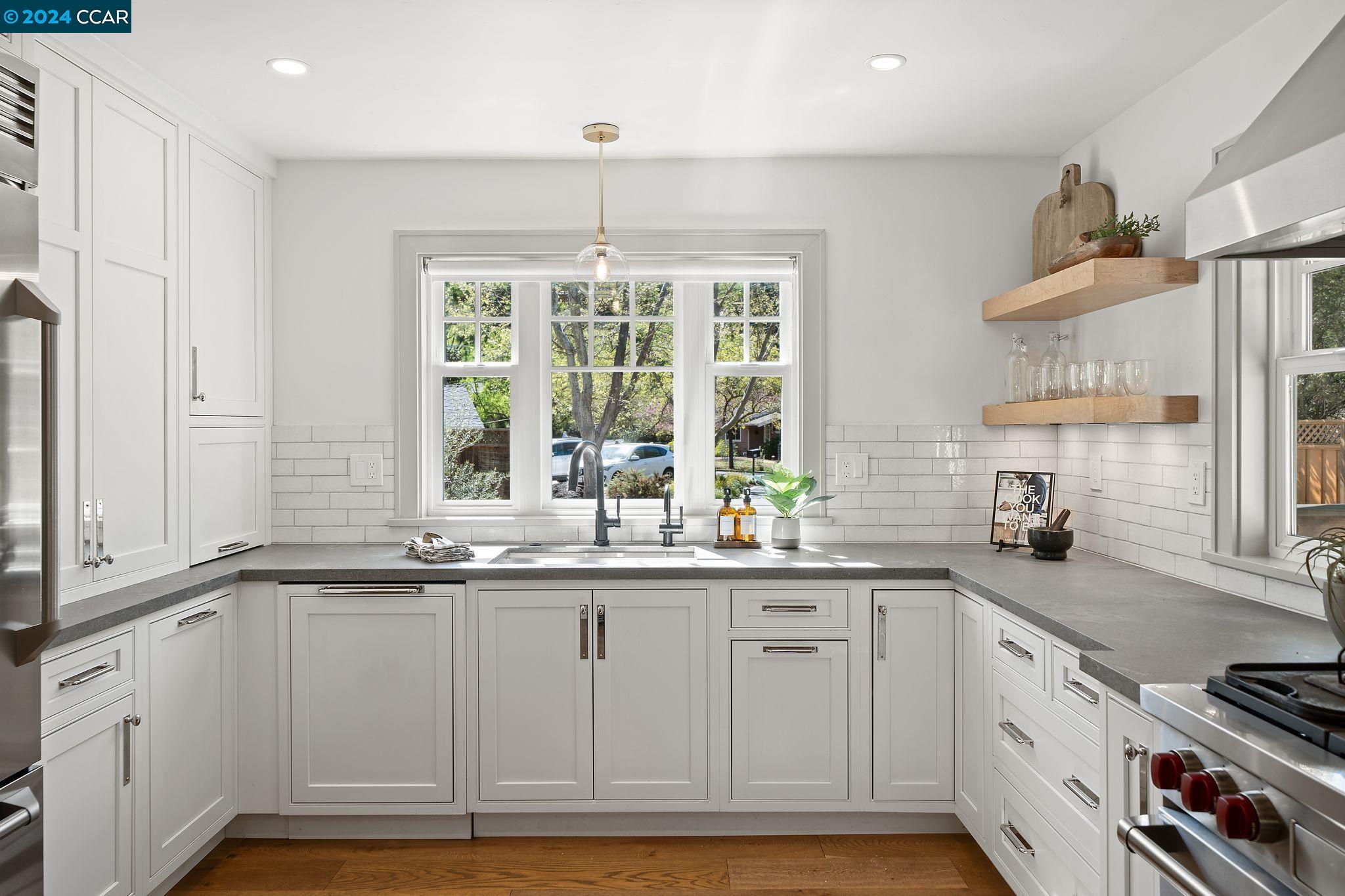 A stunning, newly remodeled in 2022 modern farmhouse on a large level lot with high-end finishes throughout. Every inch is tastefully designed with no expense spared. Open living/kitchen/dining floor plan. The kitchen boasts stone countertops, a Wolf stove and a butler's pantry. Wide plank oak floors throughout. Serene and private setting with mature trees, in a quiet neighborhood. When you step inside this beautifully designed home you will be welcomed into your sun-drenched living room with vaulted ceilings that looks out onto your expansive deck and flat yard. Fully open the stacked/sliding doors that will bring the outdoors in. Perfect for those warm summer nights hosting friends and family. The top floor offers a large bonus living room/great room. Great space for a movie night and your dream surround-system. More photos available at 228CastleGlenRd.com